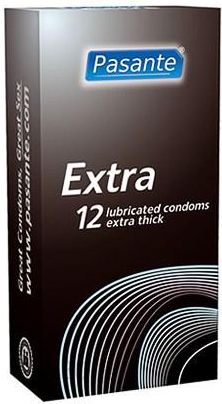 Zestaw 12 szt. Pasante Extra Safe – prezerwatywy pogrubiane, dodatkowo nawilżane. Pasante Extra Safe to grubsze prezerwatywy o anatomicznym kształcie. Zapewniają bardzo dobre dopasowanie do członka. Dodatkowa ilość lubrykantu daje przyjemność obojgu partnerom, a zwiększona grubość ścianki dostarcza maksymalnej ochrony. Polecane wszystkim, którym zależy na maksymalnej ochronie podczas stosunku. Najważniejsze cechy: pogrubiane – grubość 100 mikronów nawilżane, z dodatkową ilością środka nawilżającego długość: 180 mm szerokość: 54 mm Uwaga! Prezerwatywy wysyłane luzem bez kartonika zbiorczego.