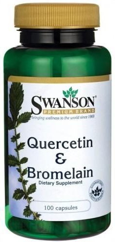 Właściwości SWANSON Quercetin&Bromelain 100caps:Obsługuje zatok zdrowia i promuje zdrowy histaminy odpowiedźWspiera zdrowy reakcji zapalnychPromuje zdrowy reakcji immunologicznejPowszechnie stosowane w łagodzeniu bólu związanego z mięśniPomaga w trawieniu białekQuercetin&Bromelain od Swasnon-produkt dla sportowców polecany przy urazach i kontuzjachSWANSON Quercetin&Bromelain to suplement składający się z kwercetyny oraz bromelainy.Kwercetyna to jeden z naturalnych flawonoidów o silnych właściwościach antyoksydacyjnych i przeciwzapalnych. Dzięki zdolności do zmniejszania uwalniania histaminy łagodzi objawy alergii. Z kolei naturalny enzym, jakim jest bromelaina, wykazuje właściwości przeciwzapalne, łagodzi bóle, zmniejsza opuchliznę i przyspiesza gojenie ran. Produkt polecany szczególnie sportowcom przy urazach i kontuzjach.Co to jest SWANSON Quercetin&Bromelain?Kwercetyna jest rozpuszczalny w wodzie bioflawonoidy, który występuje przede wszystkim w jabłka i cebuli, ale również znajduje się w czerwonym winie, Zielona herbata i warzywa liściaste. Kwercetyna wykazano, aby wspierać zdrowy histaminy odpowiedź. Kwercetyna ma właściwości antyoksydacyjne i może również wspierać układ sercowo-naczyniowy.Bromelaina jest proteolitycznych, co oznacza, że to pomaga w trawieniu białek. Bromelaina wykazano również wspierać zdrowy histaminy odpowiedź i zwiększenie aktywności kwercetyna. To również może również wspierać układ sercowo-naczyniowy. Bromelaina jest pochodną ananasy.Dawkowanie Quercetin&Bromelain Swanson:Jako suplement diety, dwie kapsułki dwa do trzech razy dziennie przepijając wodą na pusty żołądek lub zgodnie z zaleceniami lekarza.Składniki Quercetin&Bromelain Swanson:Wielkość opakowania: 100 kapsułekPorcja jednorazowa: 2 kapsułkiIlość porcji w opakowaniu: 50Mąka ryżowa, żelatyna, maltodekstryna, stearynian magnezu.Zawartość 2 kapsułki dzienne referencyjnewartości spożyciaKwercetyna500 mg *Bromelaina(2400 GDU / gram) (z ananasa) 156 mg *